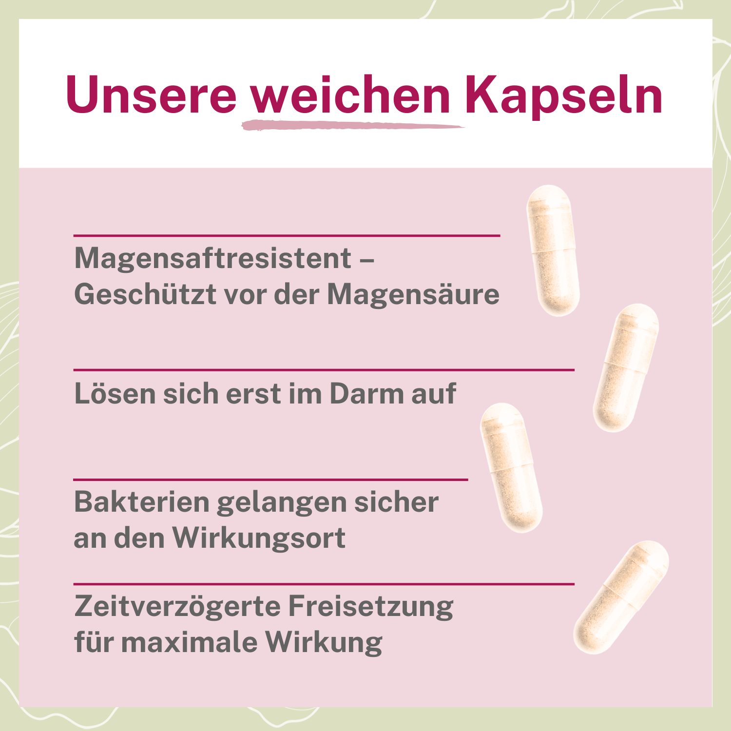 • Magensaftresistente Kapseln: Für optimale Verträglichkeit und Schutz der Inhaltsstoffe